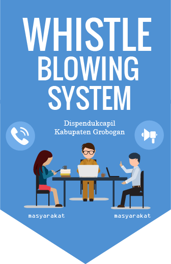 Whistleblowing System adalah aplikasi yang disediakan oleh Dinas Kependudukan dan Pencatatan Sipil Kabupaten Grobogan bagi Anda yang memiliki informasi dan ingin melaporkan suatu perbuatan berindikasi pelanggaran yang terjadi di lingkungan instansi kami.